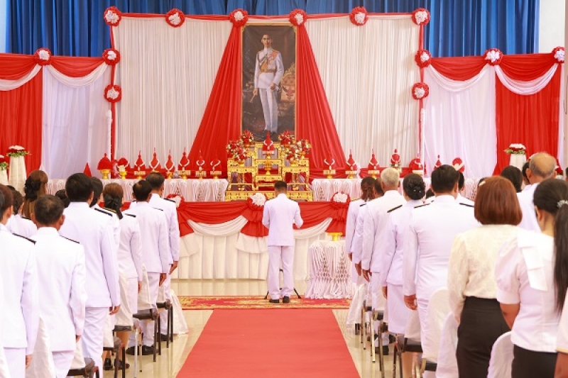 เวลา 07.00 น. พิธีเจริญพระพุทธมนต์และทำบุญตักบาตรถวายพระราชกุศล พระสงฆ์และสามเณรจำนวน 49 รูป