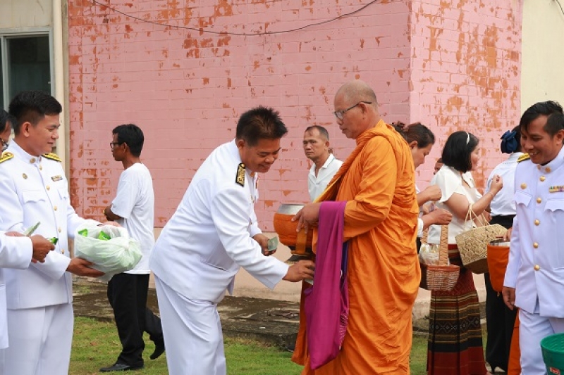 เวลา 07.00 น. พิธีเจริญพระพุทธมนต์และทำบุญตักบาตรถวายพระราชกุศล พระสงฆ์และสามเณรจำนวน 49 รูป